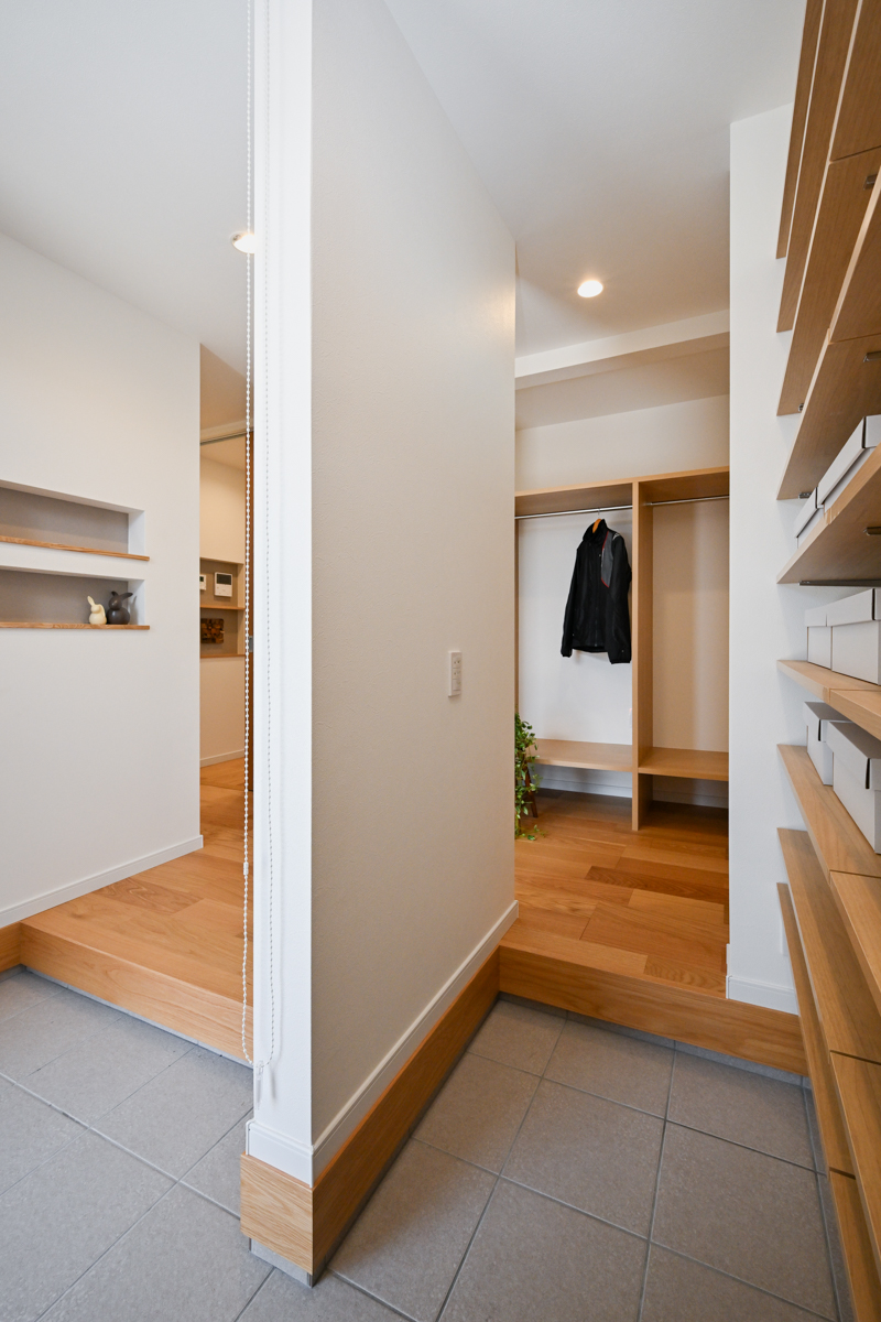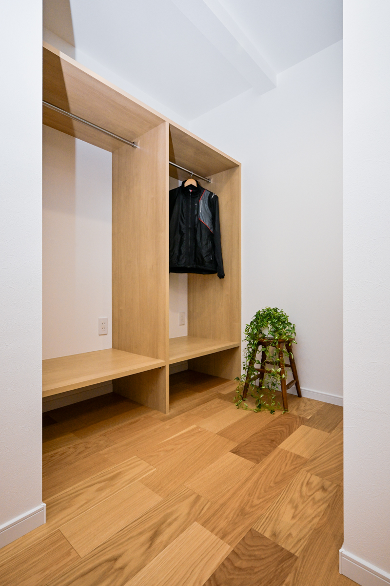土間部分にハンガーパイプもあるため、濡れた物を干したり使用頻度の高いアウターも部屋の中まで持ち込まず管理できます。