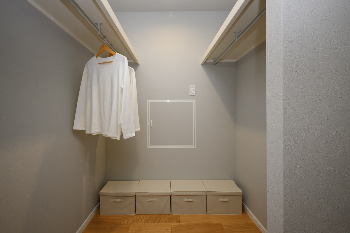 クローゼットの扉をなくし、自由度が高く収納しやすい部屋に。