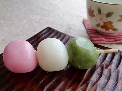 春は鶯餅や桜餅の定番のほかにお花見団子が店頭に並びます。