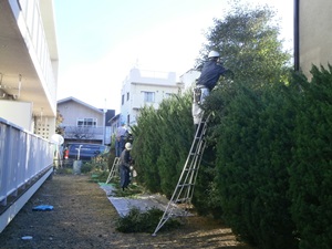 職人さんに聞いたところ、剪定のポイントは少しだけ葉を残し、ギリギリで切るといいそうです。
