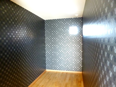 写真は黒のミッキー柄のクロスを貼った納戸です。