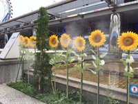 先日、東京に遊びに行って来ました。 ドーム付近に、一列に並んだ可愛いひまわりが⁇ 近づいて見ると、いっせいにミストを噴射していました。 暑いこの季節には、最高のオアシスです。 最近、色々な施設に取り付けてありますが、こんなにポップなのは初めてです。 おしゃれですよねー、夏らしくて!