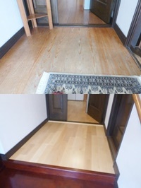 当初、k様邸玄関ホールの床はクリア塗装をする予定でしたが、表面の劣化が見つかりました。