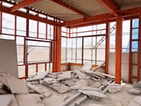 撤去作業が進んで行くと、鉄骨の軸組だけになり、リフォーム工事のスタートになります。