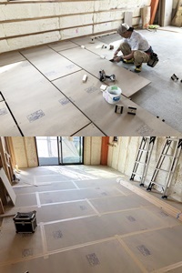 K様邸の工事も着々と進み、今週からフリーフロア工事『床組の一種。根太を設けずに、土間コンクリートなどの上に、高さの調整のできる金物を設けて床板を貼って造る床。マンションなどに多く用いられます。=「置き床」』が始まりました。 今回、K様邸は鉄骨3階の建物なので最適な床の工法です。