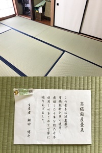 お客様と打合せをして、選んで頂いたのは国産上級品(熊本県産い草)のゴザで肉厚でしっかり目詰りのよい良品です。