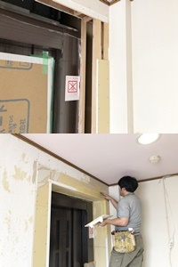 EV入替え工事も終わり、EV入口廻りの下地、内装工事を行って行きます。