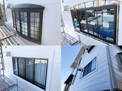 出窓サッシから単体サッシ(4枚建)への取替が完了しました。