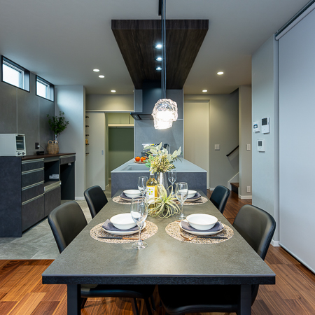 一階のリビングダイニングのスペースは、洗礼されたアーバンな雰囲気漂う素敵な空間に仕上がっています。