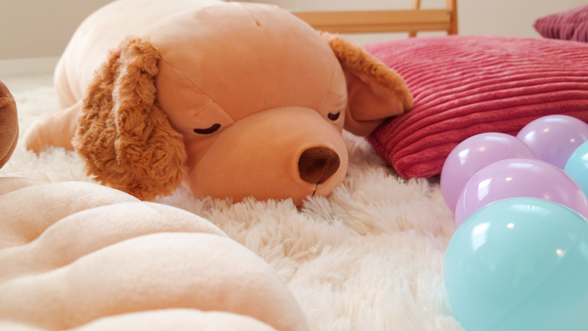 インテリアとして子ども部屋に飾ってある犬の抱き枕です。