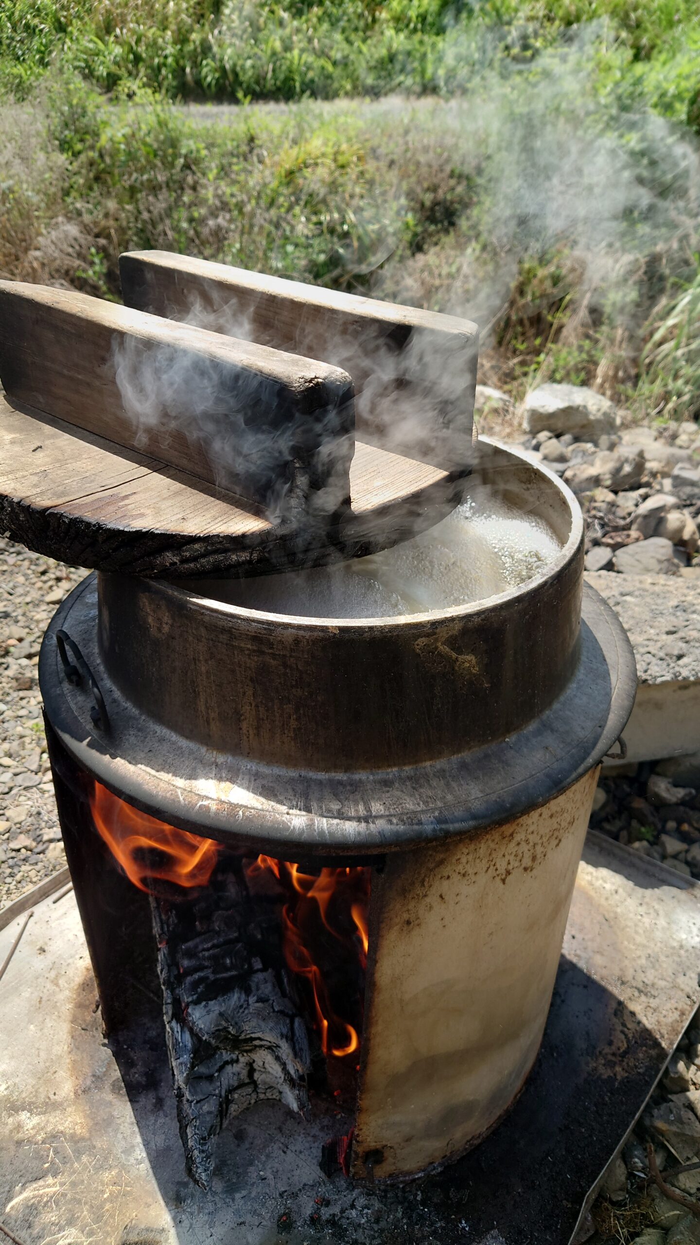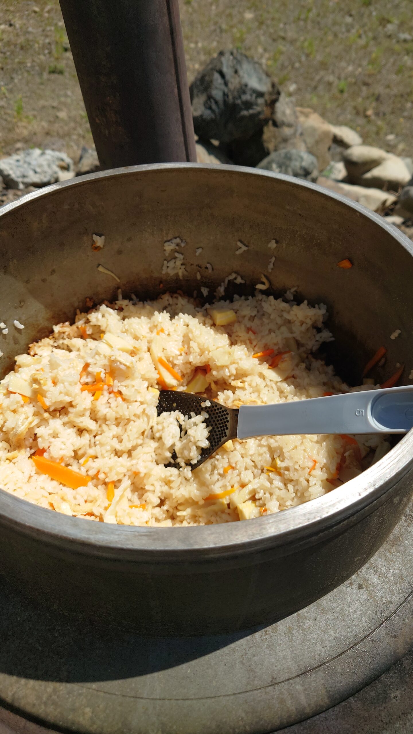 釜で炊き上げたたけのこご飯は、そのまま野外でいただきさらにおいしく感じました‼