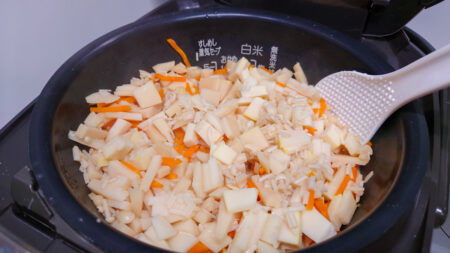 普段炊き込みご飯をあまりやらない我が家も、せっかくなので今回はたくさんたけのこご飯を作ってみました。