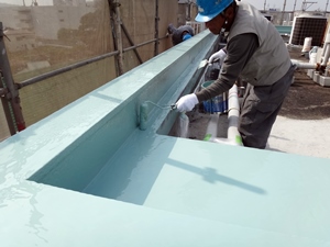 築年数の経過したビルの防水工事を施工中(お世辞にも既存の状態が良くありません。)