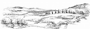 丘陵と谷、そして広大な草原にのっぽの糸杉が点在するとてものどかな地方です。