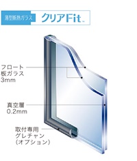 フロート板ガラスの間にある0.2ミリの真空層が、一般複層ガラスの約1.3倍、
