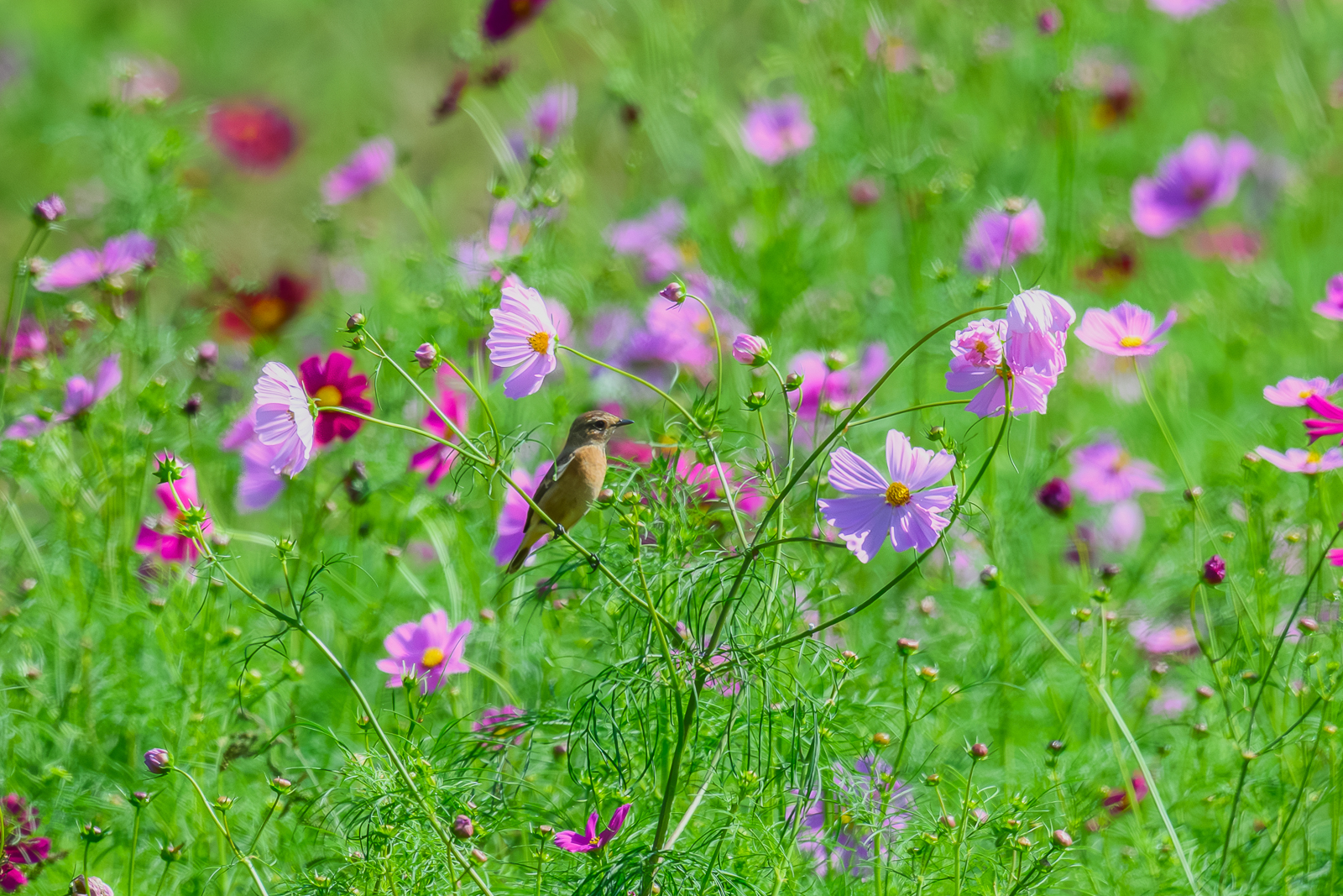 そんなコスモスの花と、ノビタキのコラボ写真を撮影して来ました。