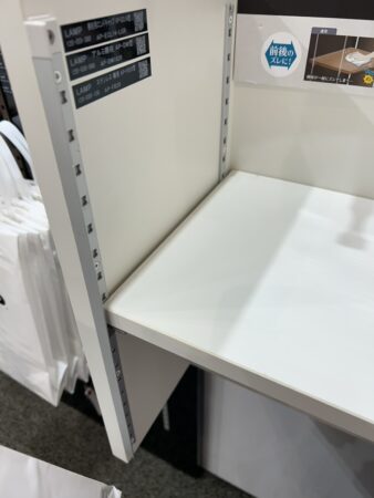 手前の棚受け柱がL型のアングルになっており、棚板本体のずれに対応していました。