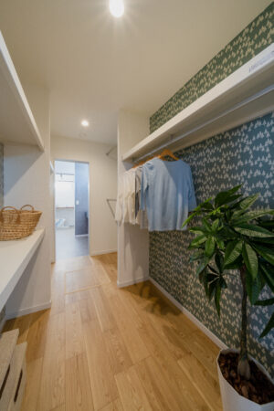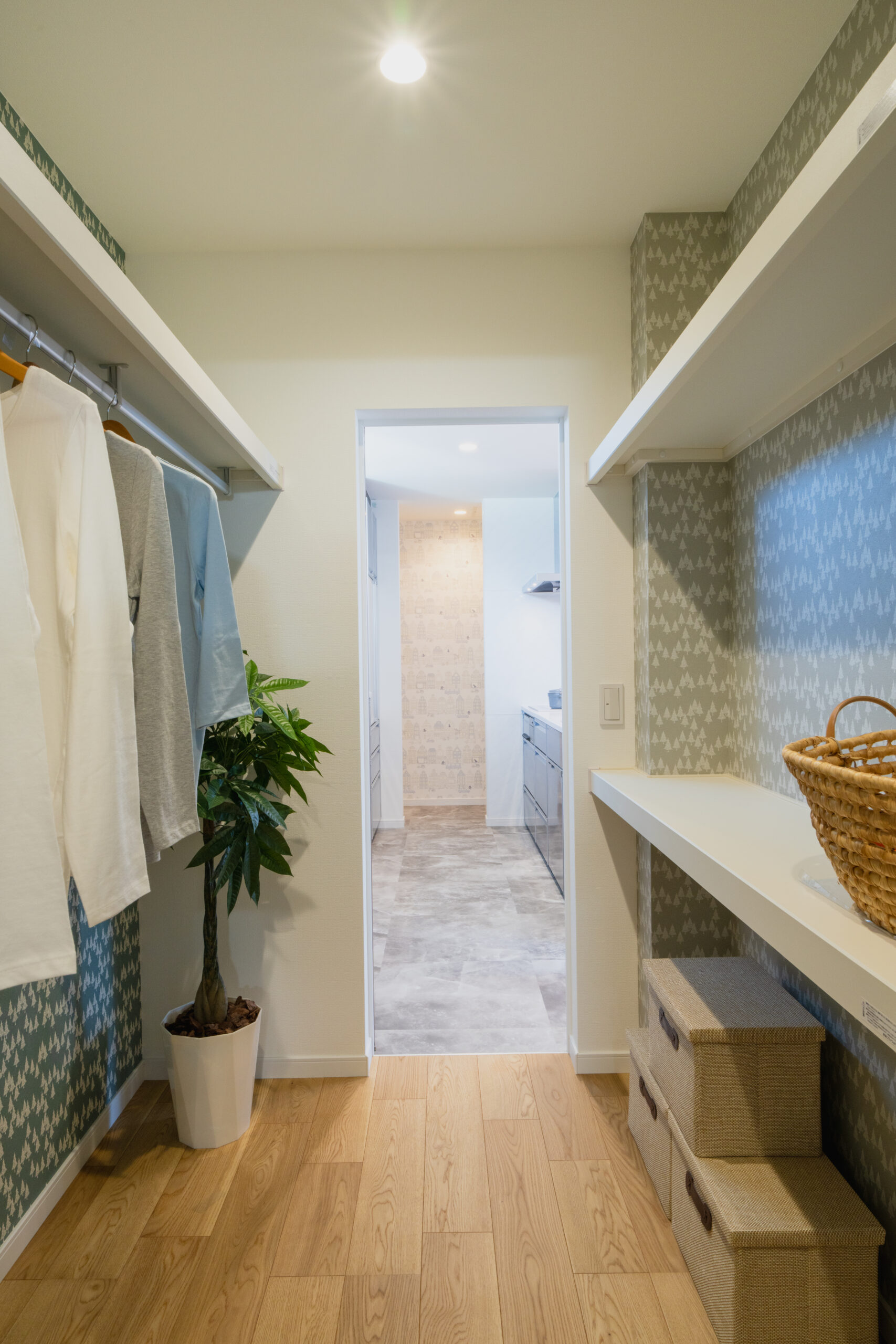 ウォークスルー型のため、回遊導線の一部でもあり、水回りと繋がっているため、家事同線も最小限に抑えることができます。