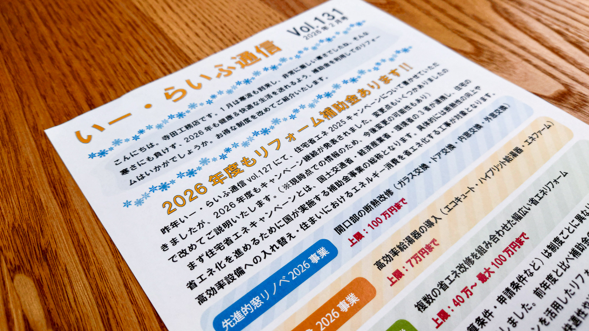 いー・らいふ通信では住宅省エネキャンペーン2026について書かせていただきました。