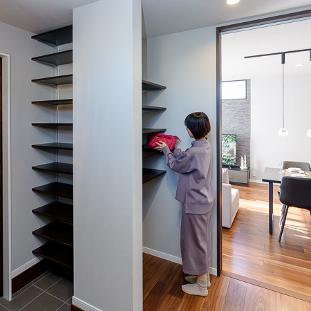 玄関に至っては、シューズ類〜コート類等々までが美観よく収納していただけます。